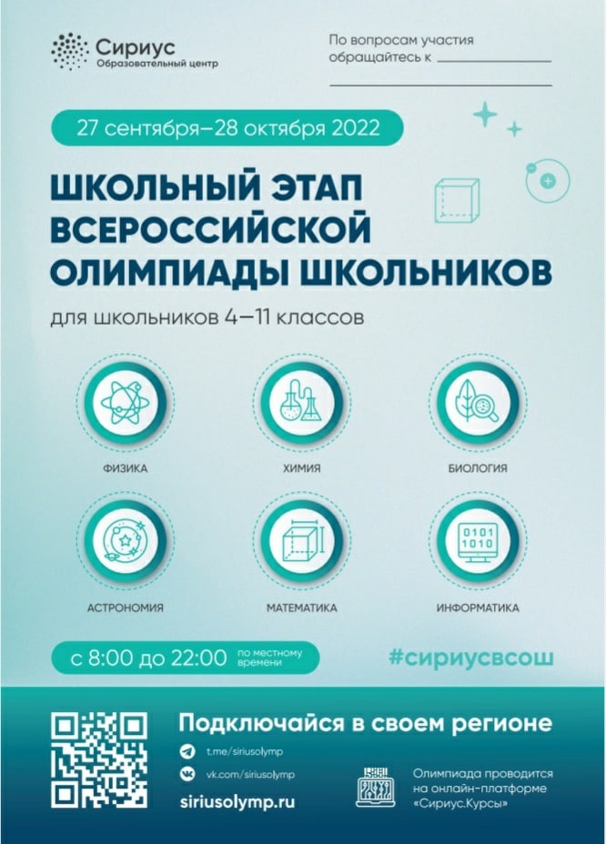 С 27.09.2022 по 27.10.2022 года проходит школьный этап