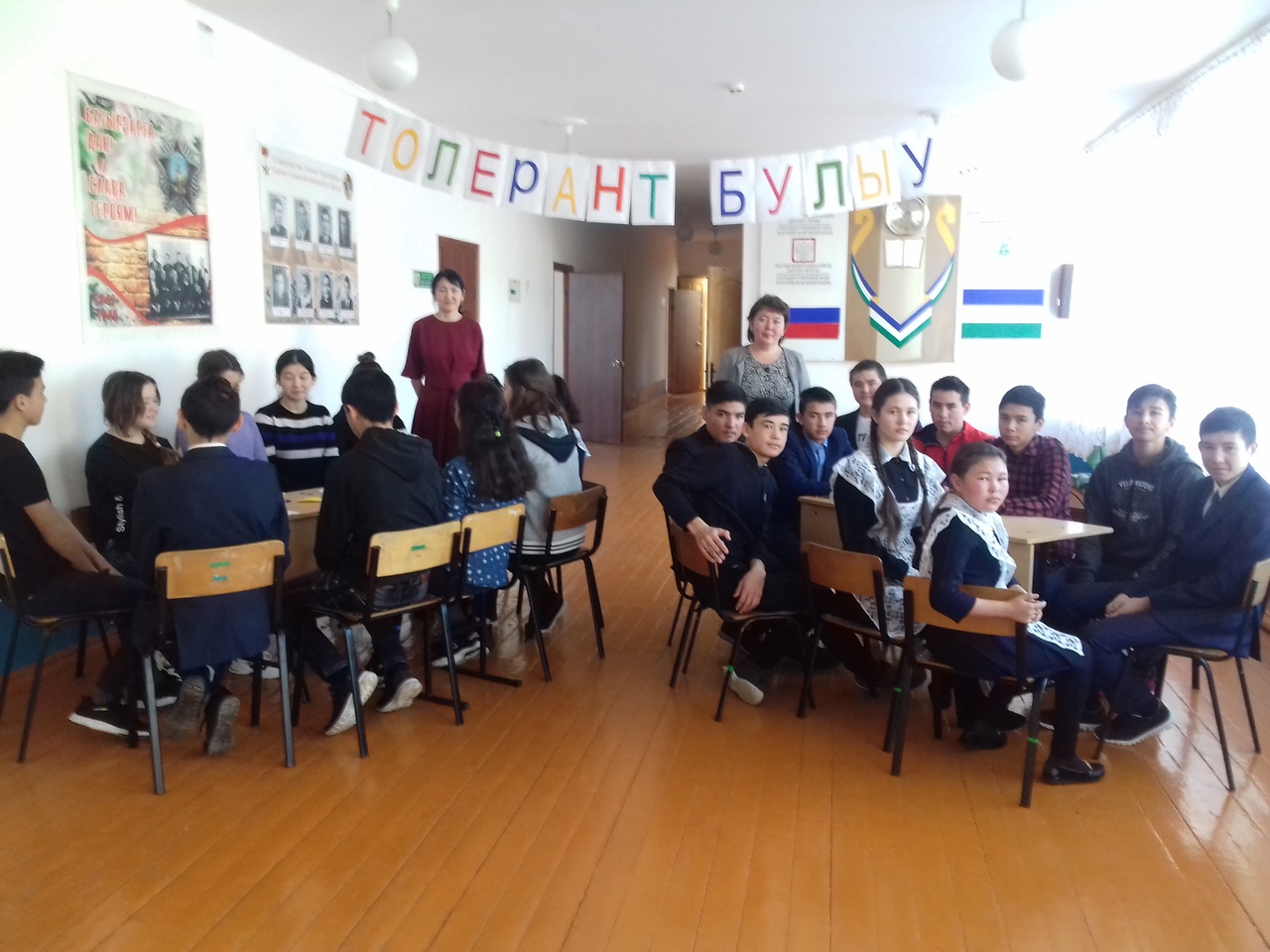16 ноябрь Халыҡ-ара толерантлыҡ йәки түҙемлелек көнө булараҡ билдәләнә. Бөгөн Беренсе Этҡол урта мәктәбендә 8-11-се класс уҡыусылары өсөн "Толерант булыу..." исемле сара үтте. Уҡыусылар "Беҙ төрлө-төрлө, әммә беҙ оҡшашбыҙ", "Дуҫыма теләктәр" кеүек уйындарҙа ихлас ҡатнашты. Уйында ҡатнашыусыларға "Толерантлыҡ дәрәжәңде билдәләйек" исемле тест һорауҙары тәҡдим ителде. Кисә аҙағында уҡыусылар үҙҙәре толерантлыҡ ҡағиҙәләре сығарҙылар һәм кешеләр менән аралашҡанда түҙемле, итәғәтле, иғтибарлы, ихтирамлы булыуҙың мөһимлеген аңлаттылар.
