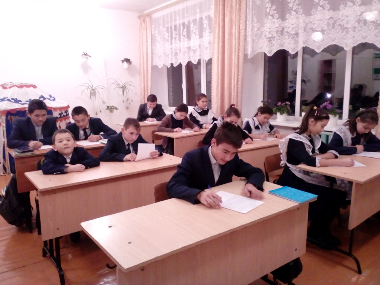 Урта класс уҡыусылары тоталь диктант яҙҙылар, юғары кластар “Туған телем – башҡорт теле” исемле викторина һорауҙарына яуап бирҙеләр.