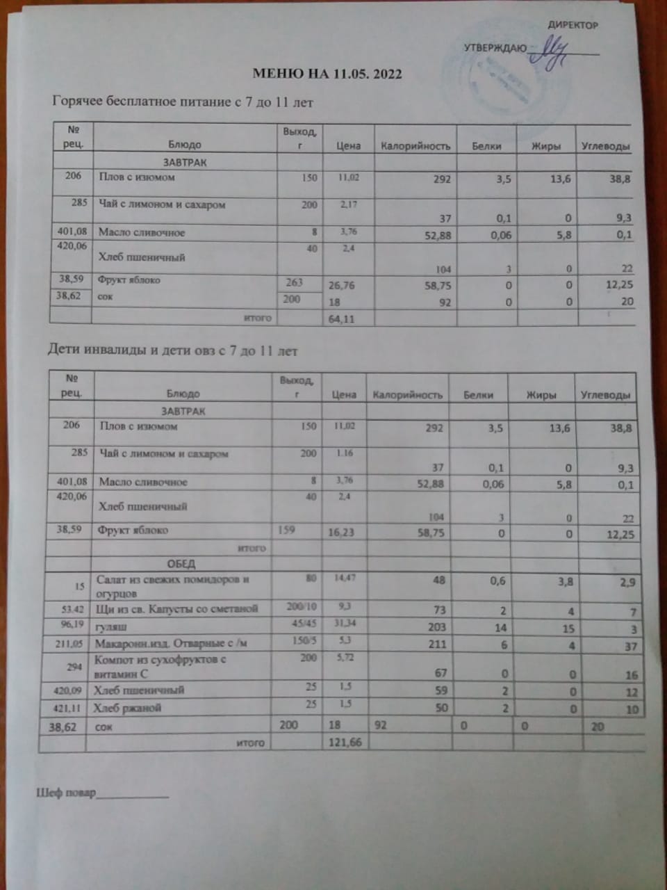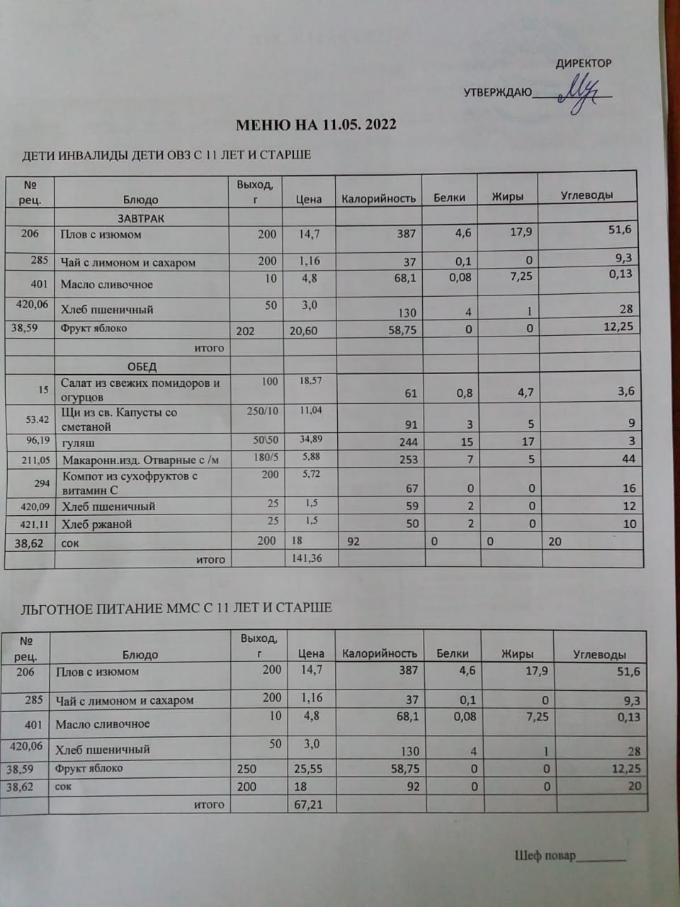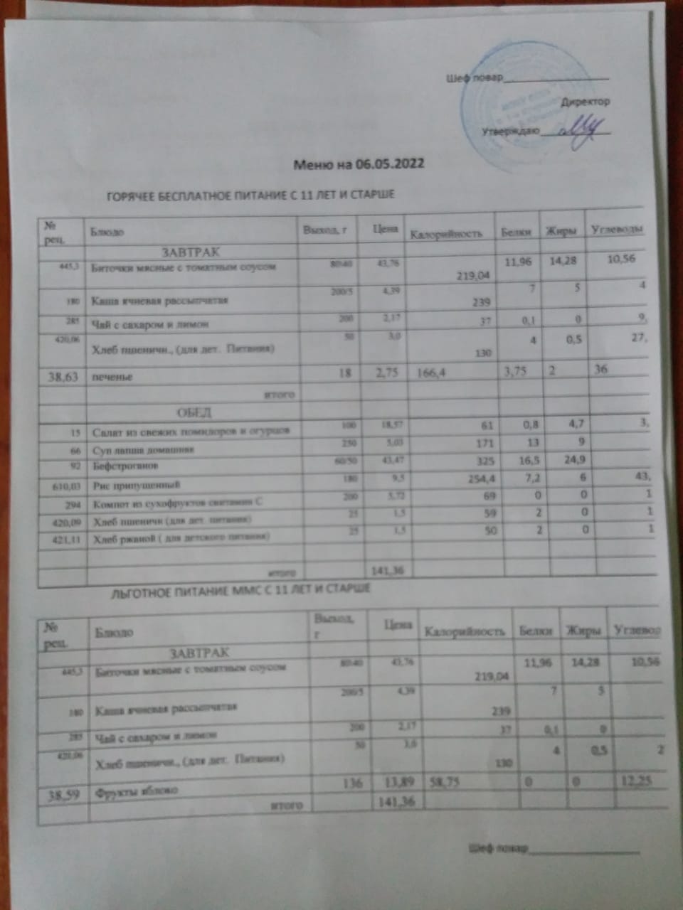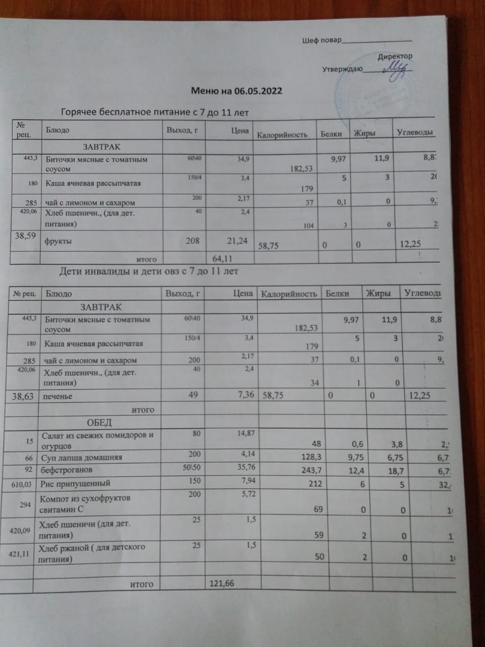Контрольное блюдо