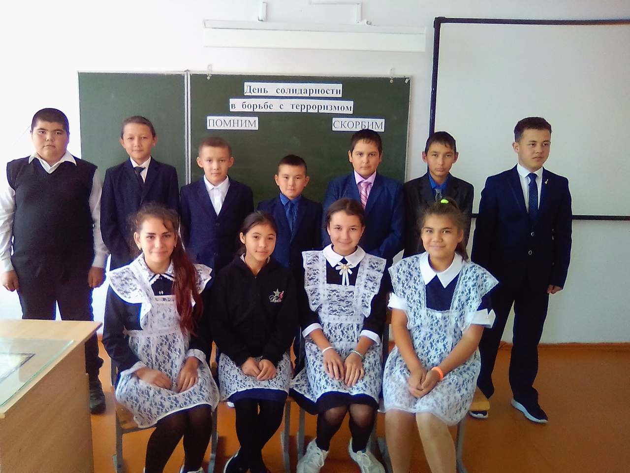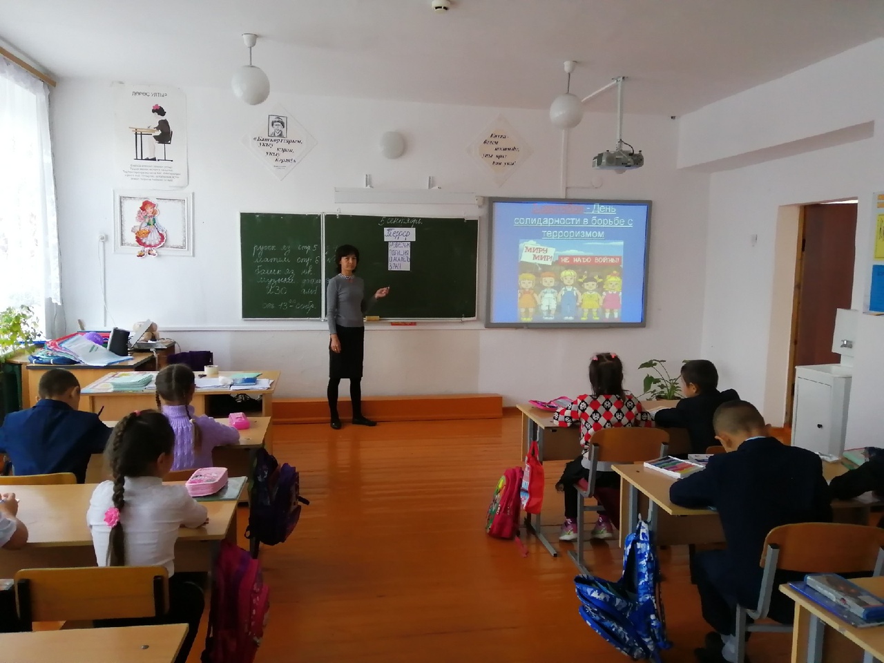1. Классные часы по тематике антитеррористической безопасности, противопожарной безопасности, правилам безопасного поведения на улице и в быту; учащиеся получили необходимую теоретическую информацию о возможных угрозах и правилах безопасного поведения. (Темы классных часов: «День солидарности в борьбе с терроризмом» 1 класс –кл. руководитель- Барлыбаева А.И., 7 кл.-Махмутова Ф.Ф., 10 кл-Гумерова В.З, 3кл-Хисматуллина Г.А.,3 сентября- День солидарности в борьбе с терроризмом» 4 кл-Хасанова А.А.,, «Твоя безопасность в твоих руках» 5 кл-Азаматова А.А.);