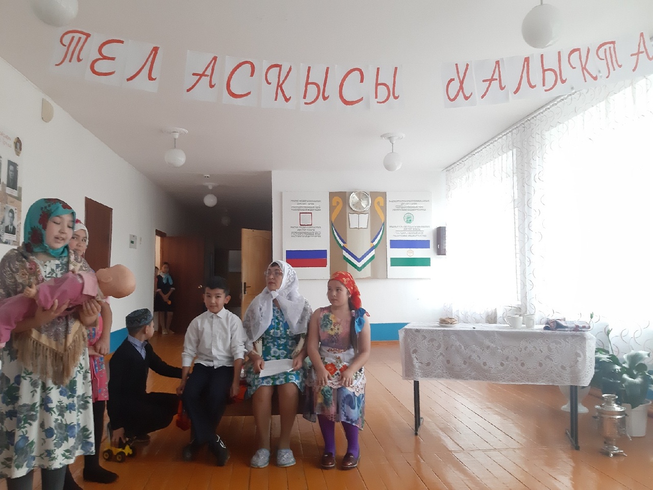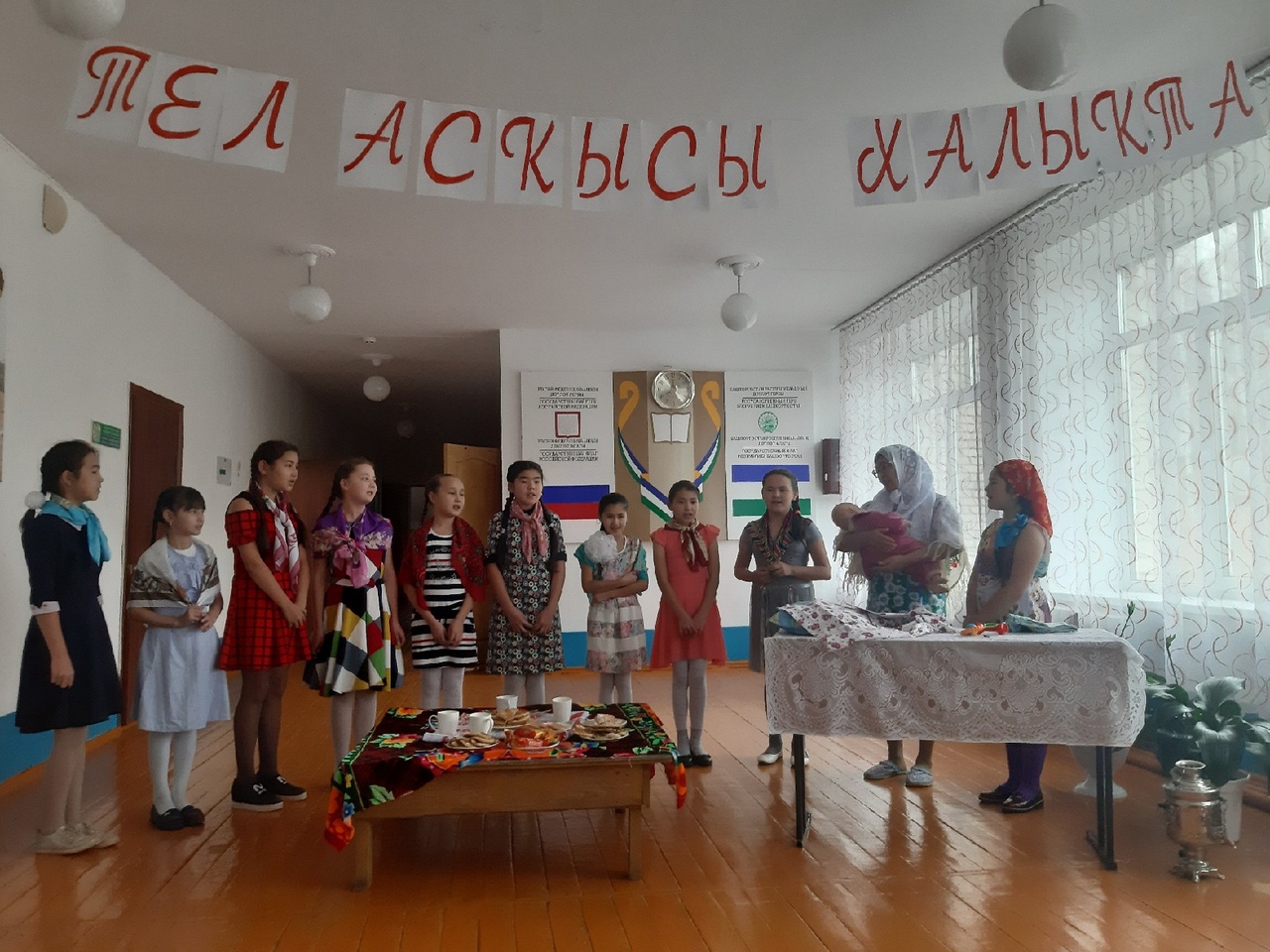 Быйылғы йылда мәктәптәрҙә биш көнлөк уҡыу аҙнаһына күсеү-ҙур ваҡиға булды. Шәмбеләрҙә төрлө саралар үткәреү-бигерәк тә ҡыҙыҡлы. Һәр айҙың бер шәмбеһендә уҡыусылар өсөн мәктәптә бер сара үткәрелә. Бөгөнгөһө этношәмбе тип планлаштырылған ине һәм ул “Тел асҡысы халыҡта” исеме аҫтында үтте. Уға ярашлы рәүештә, шулай уҡ Театр йылына, халҡыбыҙҙың данлы улы Мостай Кәримдең тыуыуына 100 йыл тулыуға, яҡташыбыҙ, күренекле ғалим һәм педагог Салауат Галиндың тыуыуына 85 йыл тулыуға арнап һәр класс халҡыбыҙҙың милли йолаларын сәхнәләштерҙе. Уҡыусылар тәҡдим иткән “Бәпәйгә исем ҡушыу”, “Аулаҡ өй”, “Ҡатыҡ тәмләшеү” кеүек йолаларыбыҙҙа халҡыбыҙҙың йәшәйеше һәм көнкүреше лә, мәҙәниәте лә, эскерһеҙлеге лә сағыла шул. Уҡыусылар шундай матур итеп, һәр йоланы еренә еткереп, милли уйындарыбыҙҙы ла ҡулланып, уларҙың бөтә тәрбиәүи әһәмиәтен алғы планға ҡуйып уйнанылар, класс етәкселәре (Азаматова Ә.Ә., Дәүләтбаева Ф.Ә., Дәүләтбаева С.Р.) үҙҙәре үк балалар менән бергә сәхнәлә ине. Сараны Дәүләтбаева Фәнисә Әмир ҡыҙы һәм Мәхмүтова Гүзәл Айҙар ҡыҙы ойошторҙо.