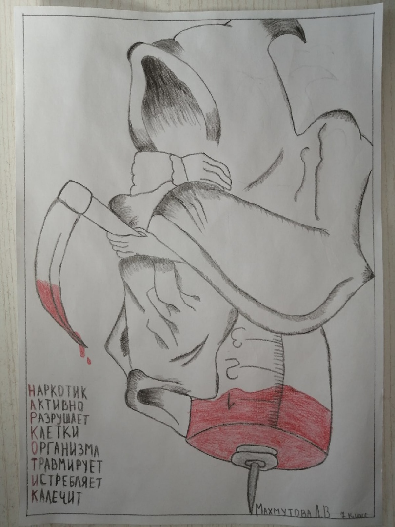 Наркомания ауырыуының асылын асыҡлау, уҡыусыларҙы әлеге ҡурҡыныс сирҙән киҫәтеү һәм уларҙа сәләмәт йәшәү рәүеше формалаштыу маҡсатынан Б.Юлыев исемендәге Беренсе Этҡол урта мәктәбе уҡыусылары каникул осоронда ошо темаға һүрәттәр төшөрҙөләр.