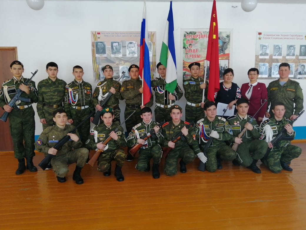 Айлыҡты асыу тематик линейкаһы тантаналы рәүештә башланды. Барлыҡ мәктәп уҡыусылары өсөн Рәсих Рәсүл улы Йортбәковтың тәрбиәләнеүселәре СССР, Башҡортостан Республикаһы, Рәсәй Федерацияһының байраҡтары аҫтында сафтарҙа үттеләр. Мәктәп директоры Миңлегөл Төхвәт ҡыҙы айлыҡты асыҡ тип иғлан итеп, барлыҡ уҡыусыларҙы ла үткәреләсәк сараларҙа актив ҡатнашырға саҡырҙы. Тәрбиәүи эштәр буйынса директор урынбаҫары Азаматова Ә.Ә. хәрби- патриотик айлыҡтың планы менән таныштырҙы