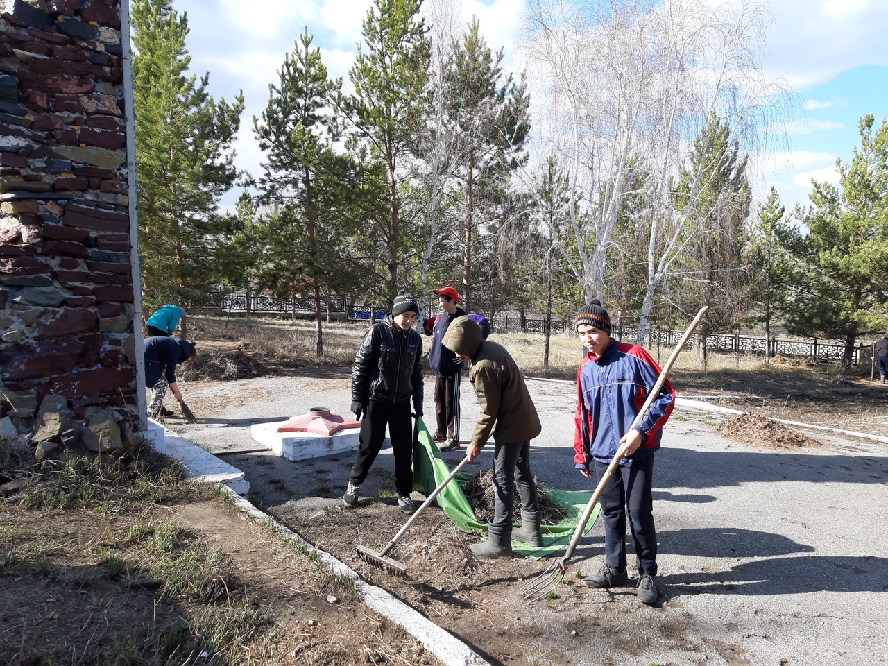 8 - сҽ класс уҡыусылары, класс ҽтәксҽләрҽ Гүзәл Айҙар ҡыҙы һәм мәҙәниәт йорто ҽтәсҽһҽ Арсҽн Хөрмәт улы мҽнән бҽрлҽктә, обҽлискы тирәһҽн сүп-сарҙан таҙартыу өмәһҽндә ҡатнаштылар. Егҽттәр үткән йылдан ҡалған ҡоро үләндҽ тырматып өйҙө, ҡыҙҙар һҽпҽрҽп ҡуйҙы. Был сауаплы эш һуңынан Арсҽн Хөрмәт улы уҡыусыларҙы туңдырма мҽнән һыйланы, уҡыуҙарында уңыштар тҽләнҽ.