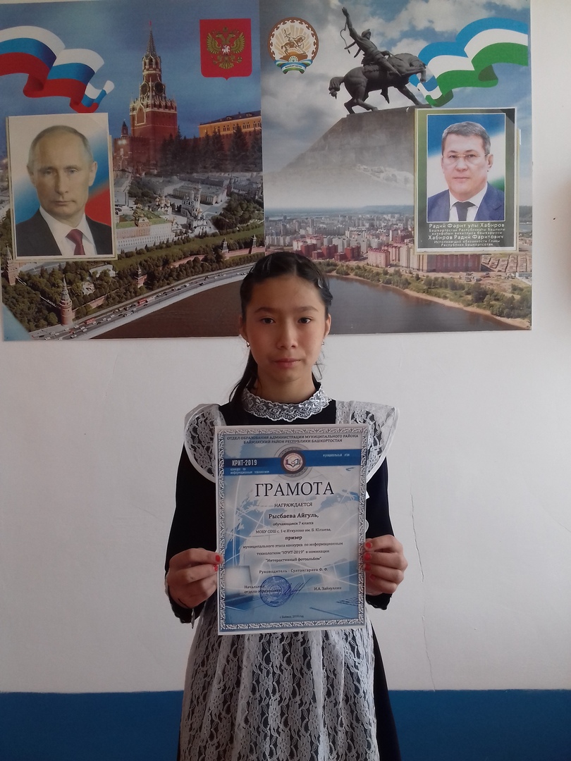 Учащиеся МОБУ СОШ с. 1-е Иткулово ежегодно активно принимают участие в конкурсе работ по информационным технологиям среди школьников «КРИТ». В этом году ученица 7 класса Рысбаева Айгуль (руководитель Султангариев Ф.Ф.) стала призером муниципального этапа конкурса.